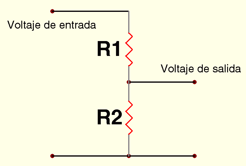 Con un par de resistores se puede obtener de un voltaje de entrada un voltaje menor de salida. Los resistores forman un divisor potencial que suministra poca corriente y la precisión del voltaje de salida depende del voltaje de entrada, que se puede corregir con un diodo zener de 20 mA colocado en el lugar del resistor R2 y se obtiene un voltaje preciso que varía del 5% al 2.3%.