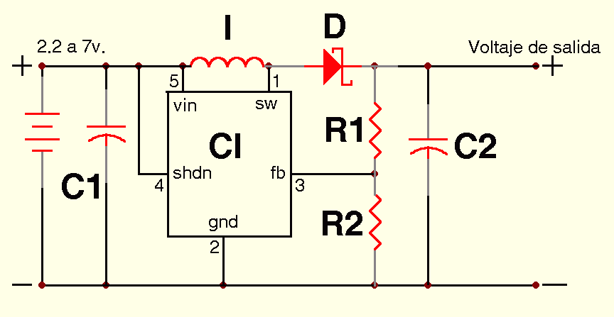 Con R1 y R2 se puede fijar 12V de salida con 180 mA. (5V entrada)
