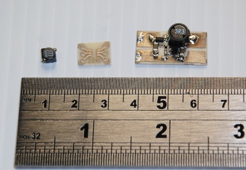 Lista de materiales para un voltaje de salida de 5V 120mA: CI Regulador LM2704MF-ADJ SOT-23-5 National C1 Capacitor cerámico 4.7mF 10V SMD 0805 Murata C2 Capacitor cerámico 4.7mF 25V SMD 0805 Panasonic I Inductor 2.2uH VLS25201ST-2R2M1R2 SMD TDK D Diodo Shottky MBRM540 SMD SOD-123 On Semi R1 Resistor 1MG 1% SMD 0603 KOA R2 Resistor 330K 1% SMD 0603 Yageo