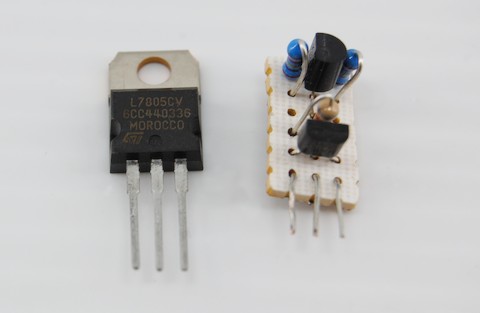 La estabilidad de voltaje mejora con un comparador de voltaje que monitorea el voltaje de referencia interna con el voltaje de salida, como funcionan los reguladores de voltaje linear baratos y fáciles de usar de la serie LM78XX que tienen tres terminales que usan el voltaje de entrada, el polo negativo y el voltaje de salida fijado, aunque se necesita ventilar el calor que produce el chip, una lámina de aluminio doblada lo disipa y esto ocupa espacio para el proyecto.